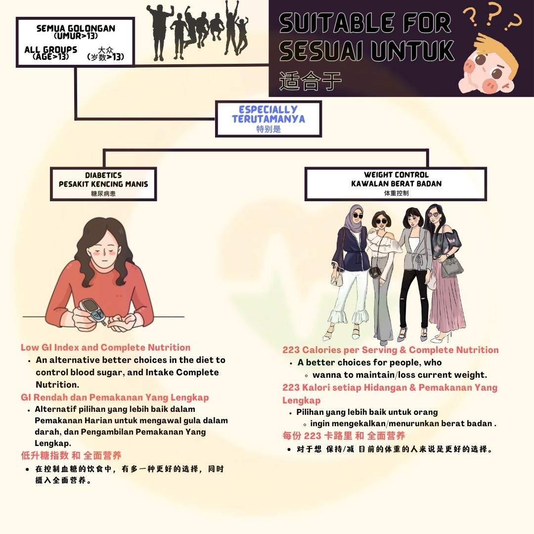 - Low Glycemic Index (GI), suitable for diabetics