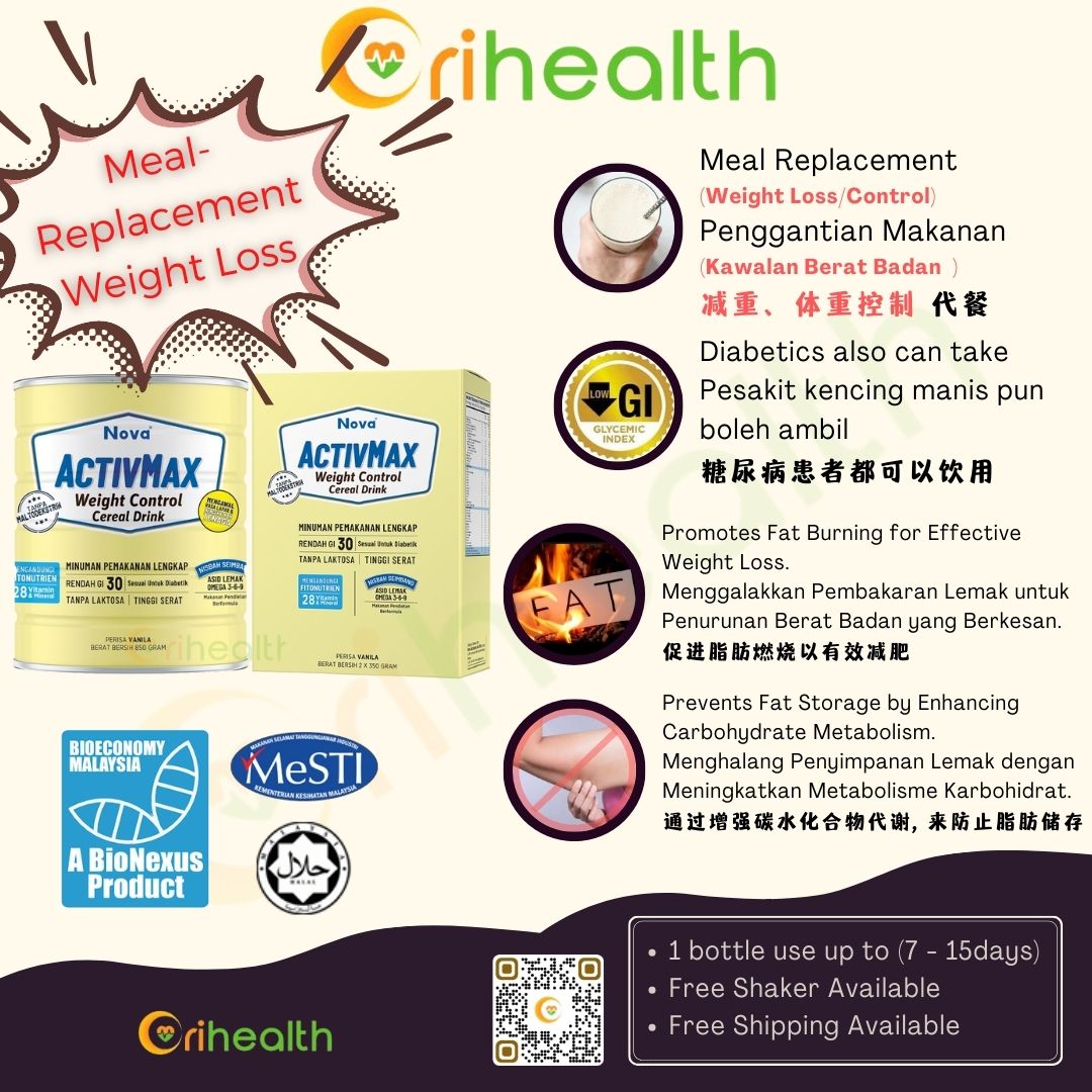 - ACTIVMAX Weight Control Cereal Drink can be taken at any time of the day as meal replacement for men and women above 12 years old.