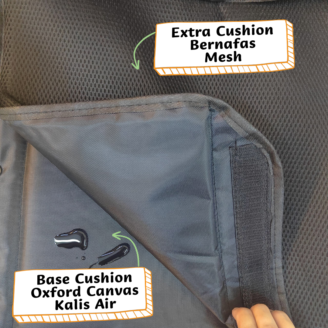 Bahan Tempat Duduk : Oxford Canvas (Kalis Air) + Honey Comb Mesh ( Kushion Tambahan )