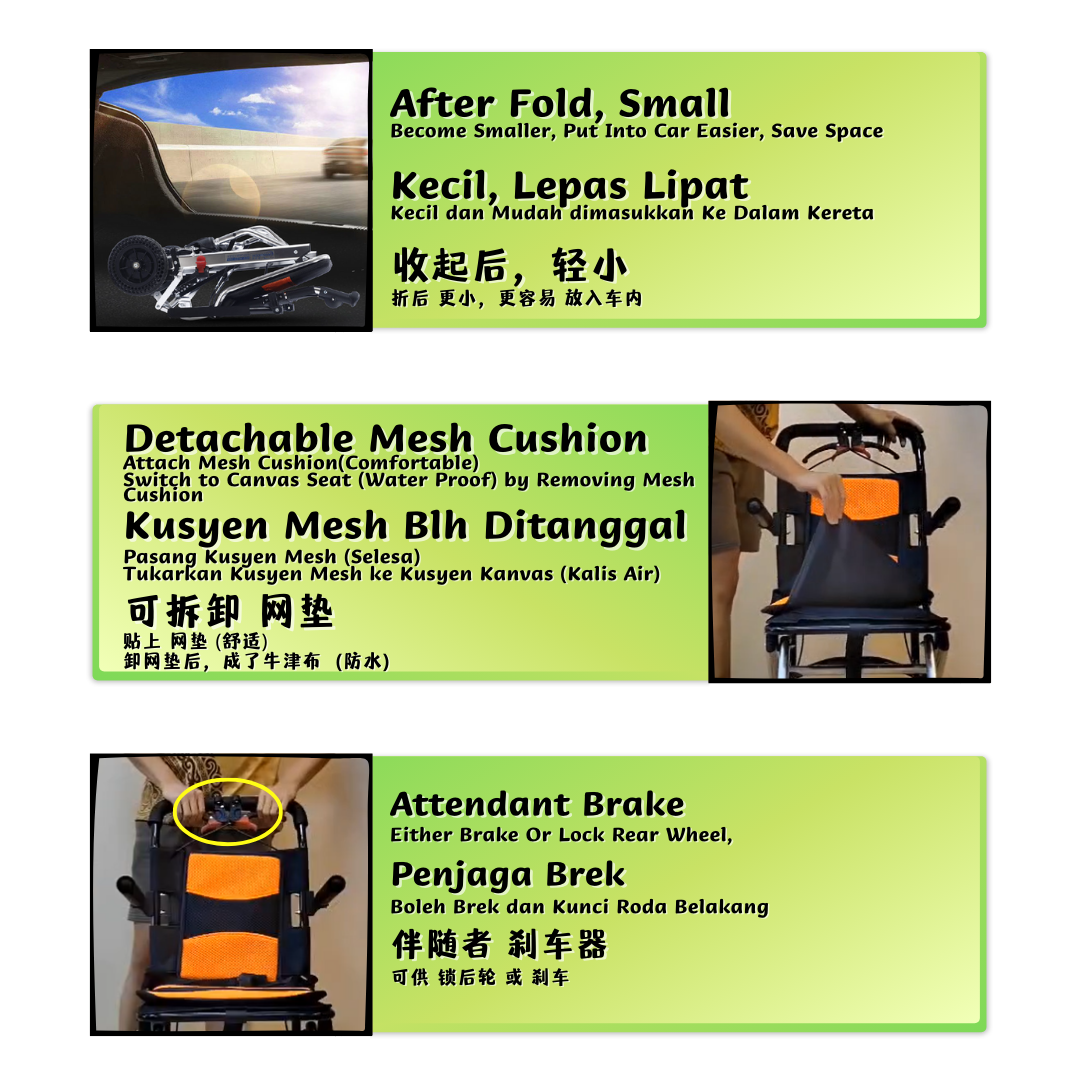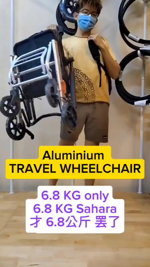 Kerusi Roda Travel Aluminium Alloy 6.8 KG 16Inci Lebar Tempat Duduk Tempat Letak Tangan Boleh Dilipat Honeycomb Mesh Kushion