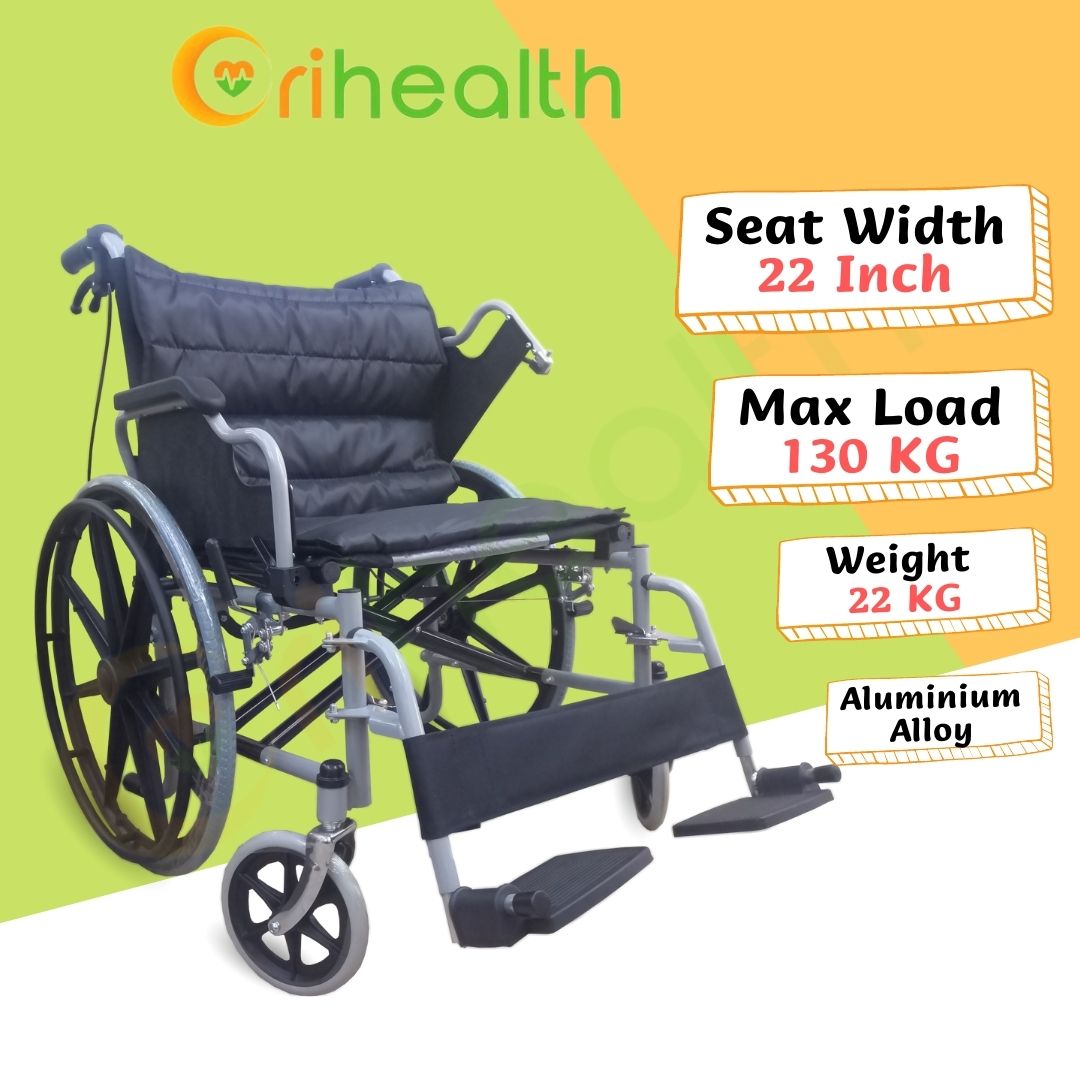 Kerusi Roda Aluminium Alloy 22KG 22Inci Lebar Tempat Duduk